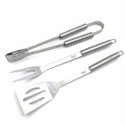 Σετ Εργαλείων: Περιλαμβάνει μία σπάτουλα (35,4 x 7,7 εκ.) με αιχμηρή άκρη για εύκολο γύρισμα και σερβίρισμα, ένα πιάτο (35,3 x 3,4 εκ.) ιδανικό για να κρατάτε τα κρέατα κατά το κόψιμο ή γύρισμα, και τσιμπίδα με 8 δόντια (34,5 x 4,2 εκ.), ιδανική για ασφαλή χειρισμό των ψημένων φαγητών.